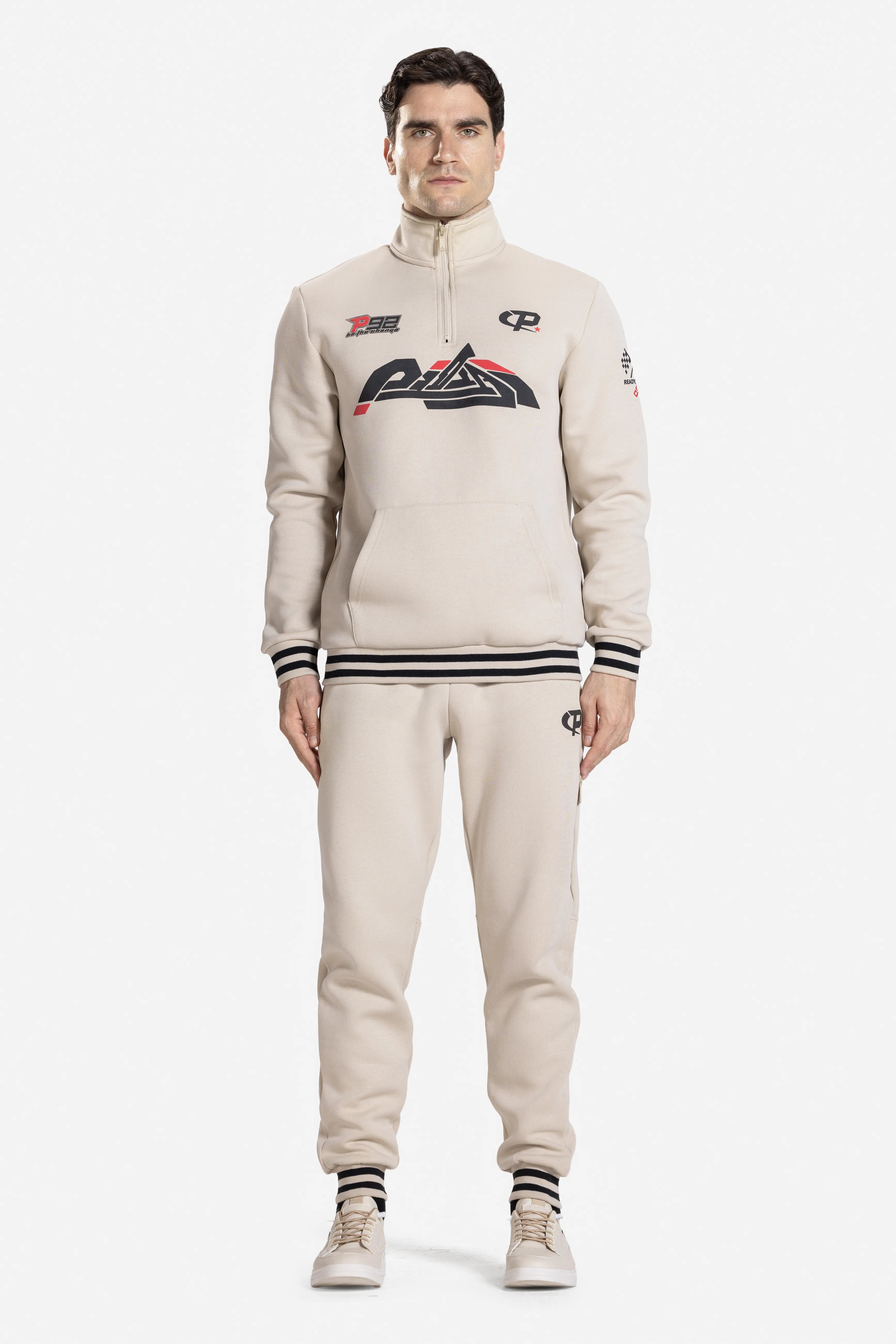 ribbing, while trousers are crafted from durable cotton-twill or woven blends