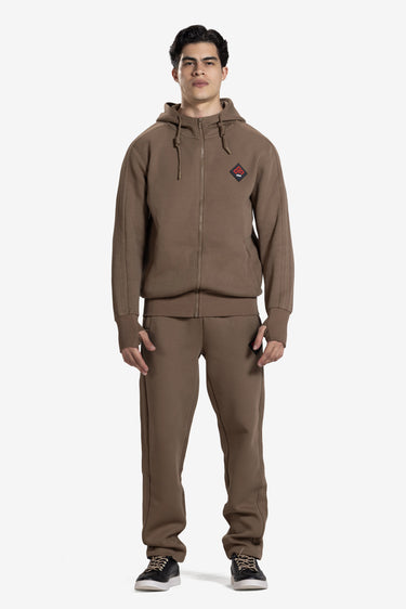 ribbing, while trousers are crafted from durable cotton-twill or woven blends